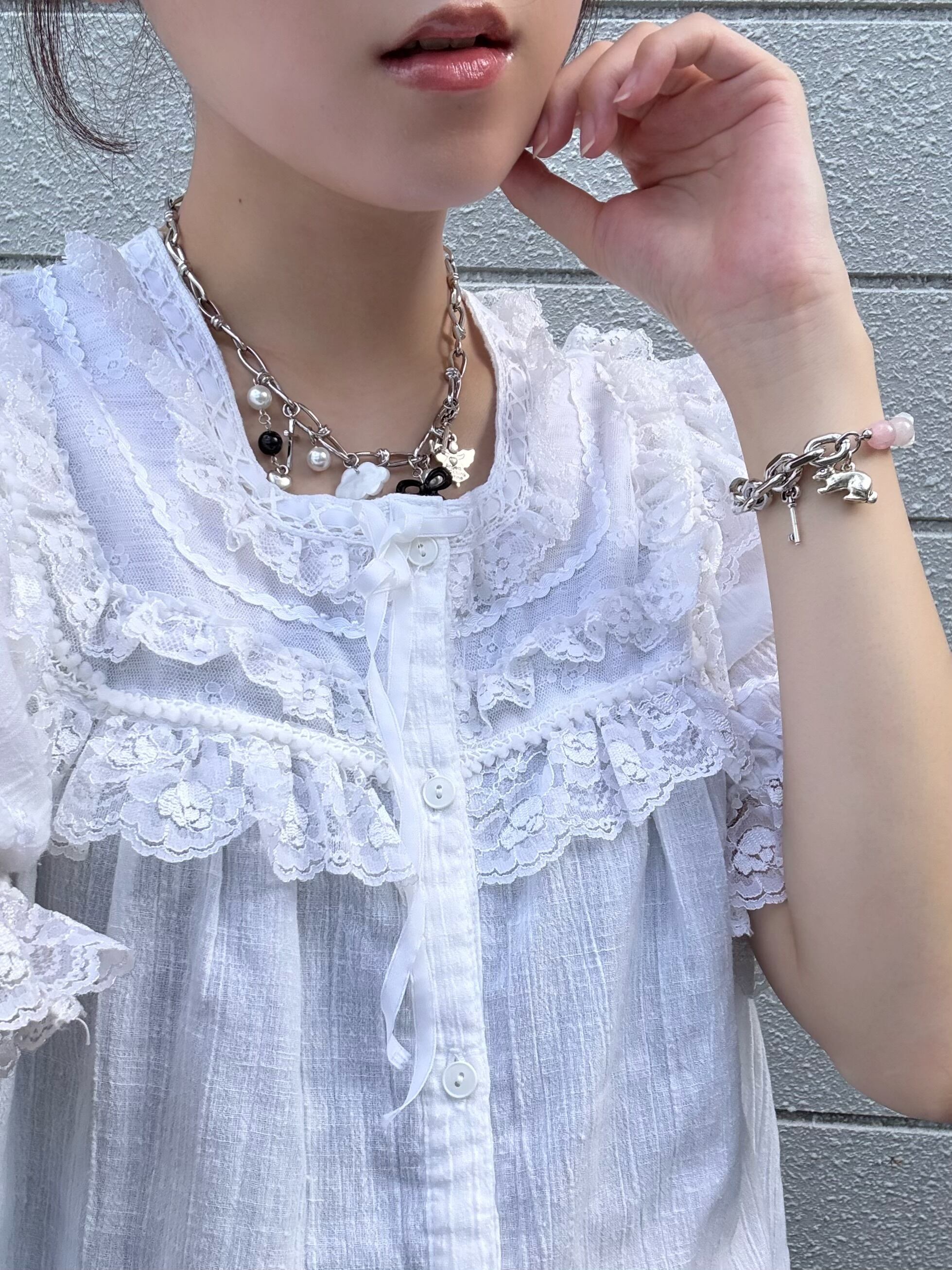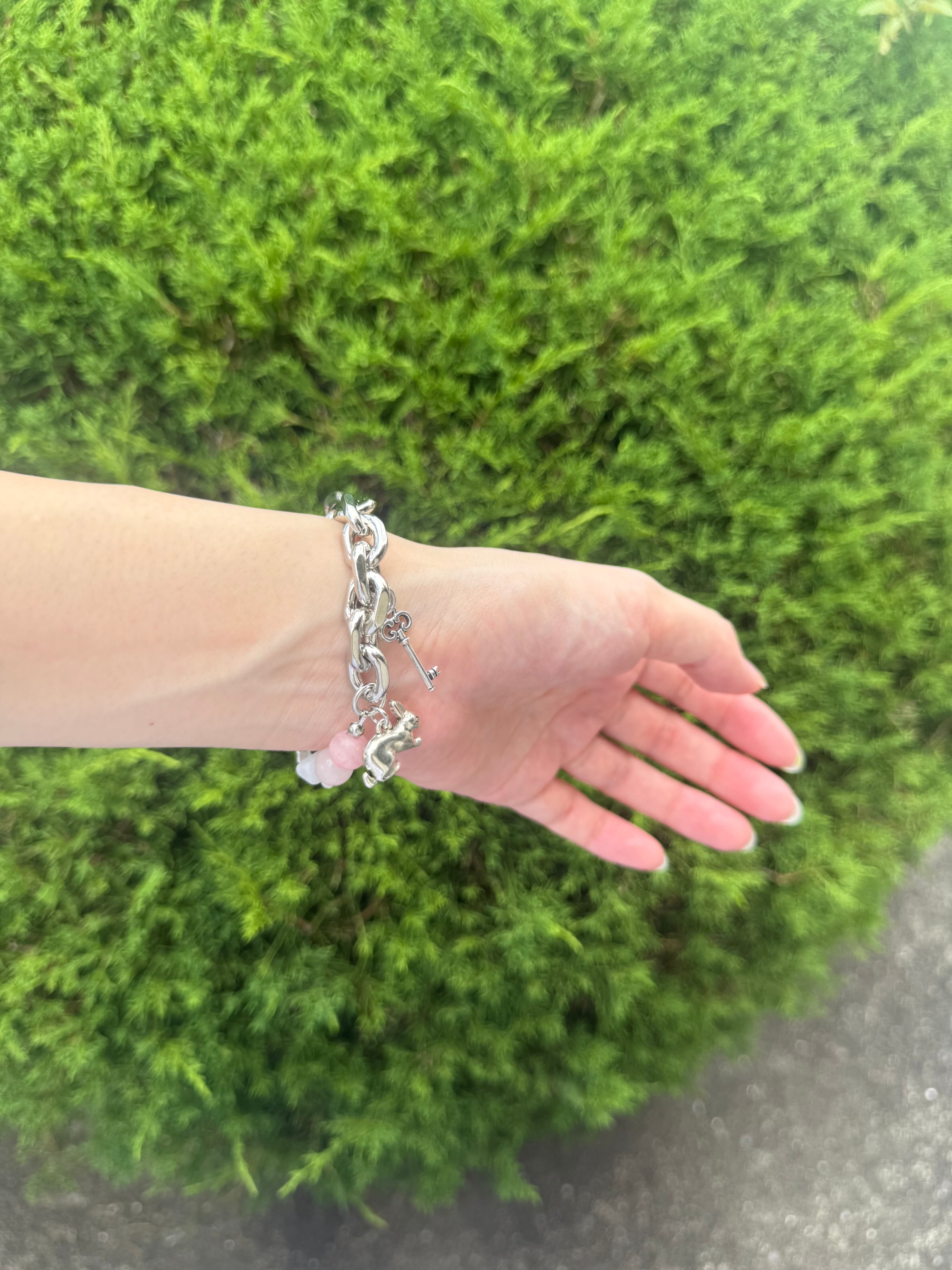 天然石のローズクォーツ、パールを使ったブレスレット。