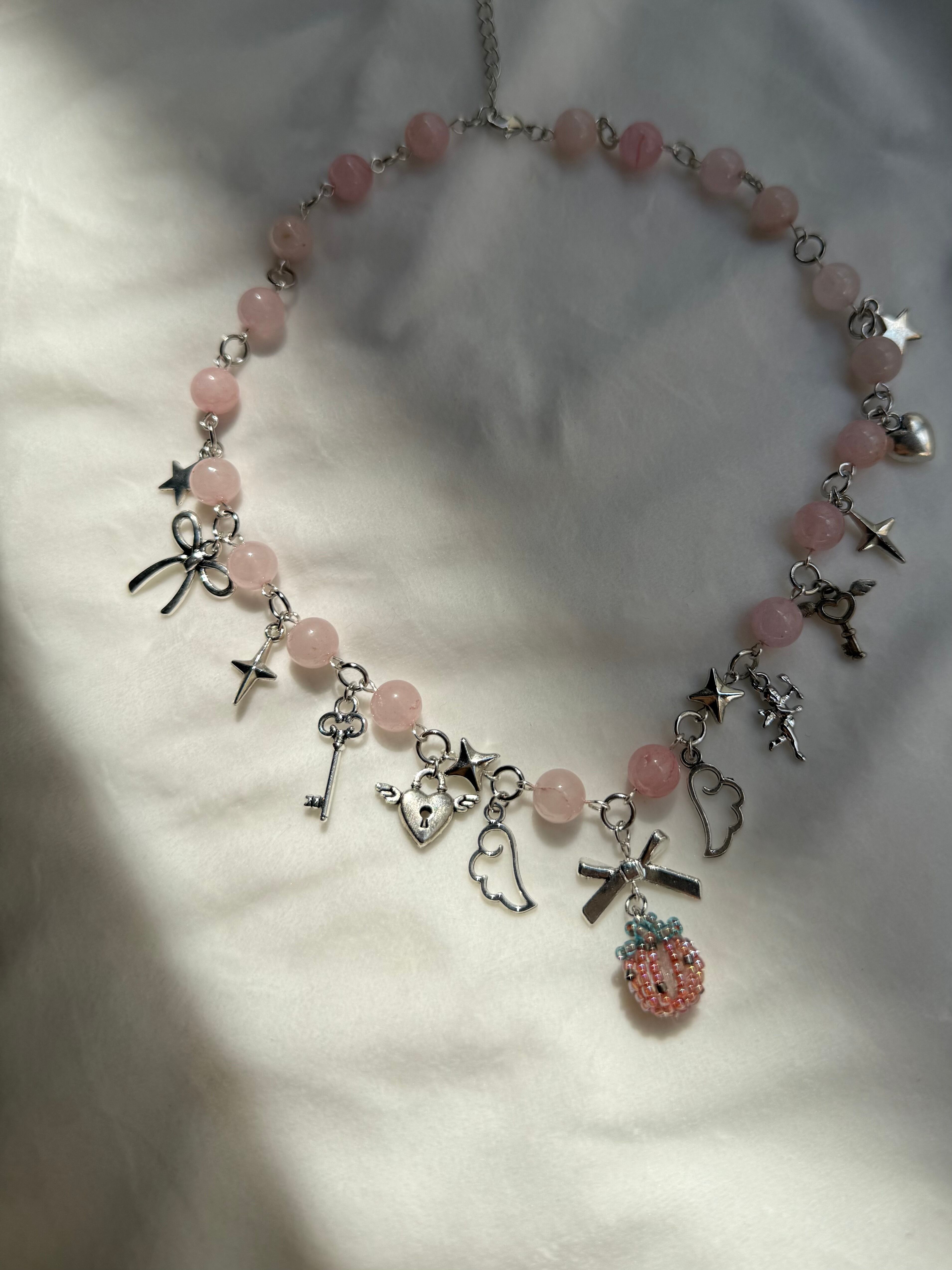 ビーズ編みで作ったいちごがポイントのネックレス。